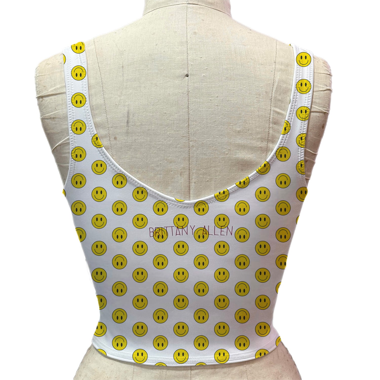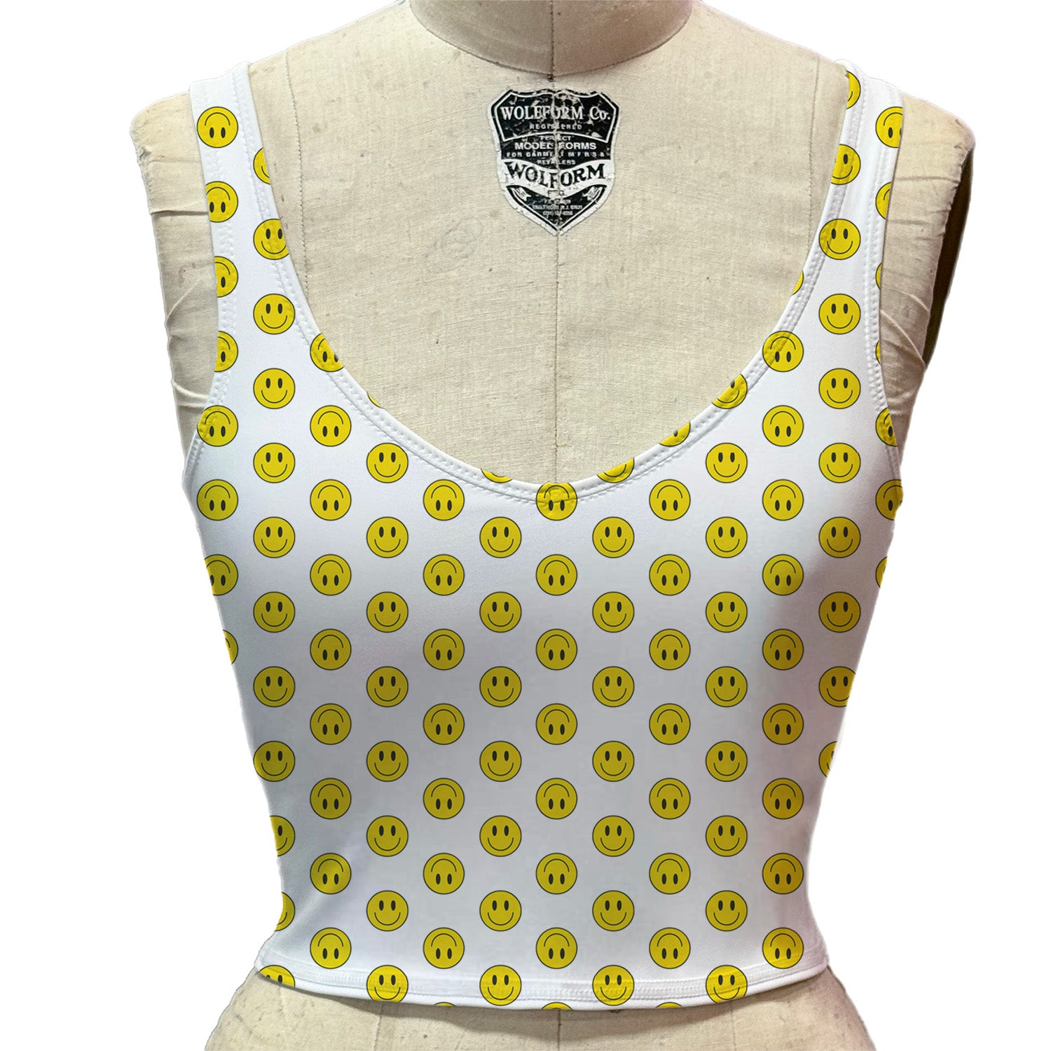 Welcome to the Four Love Club! The Ace V-Neck Tank is a cropped, lined compression tank made of a matte smiley face printed poly spandex. It’s perfect for a stand-out moment on and off the court! Designed to move with you, this fabric transforms any active outfit into something extraordinary. This tank is simply a slip on v-neck tank spandex that hugs the body making it a compression type top. The tank has no shelf bra, but the support is within the compression tightness of the tank itself. Tank is a slip on, and there are no closures.